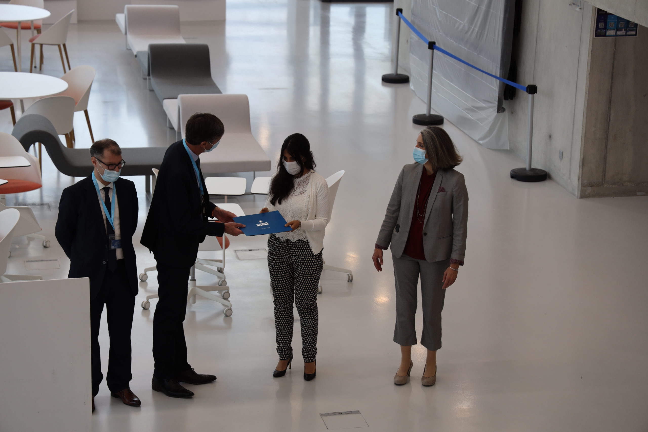 The graduation ceremony was held for the first time in IMREDD’s new premises within its Learning Centre, in the presence of the IMREDD Director, Prof. Pierre-Jean BARRE, the Director of the MSc, Prof. Matteo CAGLIONI and the International Admissions team, Mrs Arianna CALZA and Mrs Aurélie MOUËLLLIC.